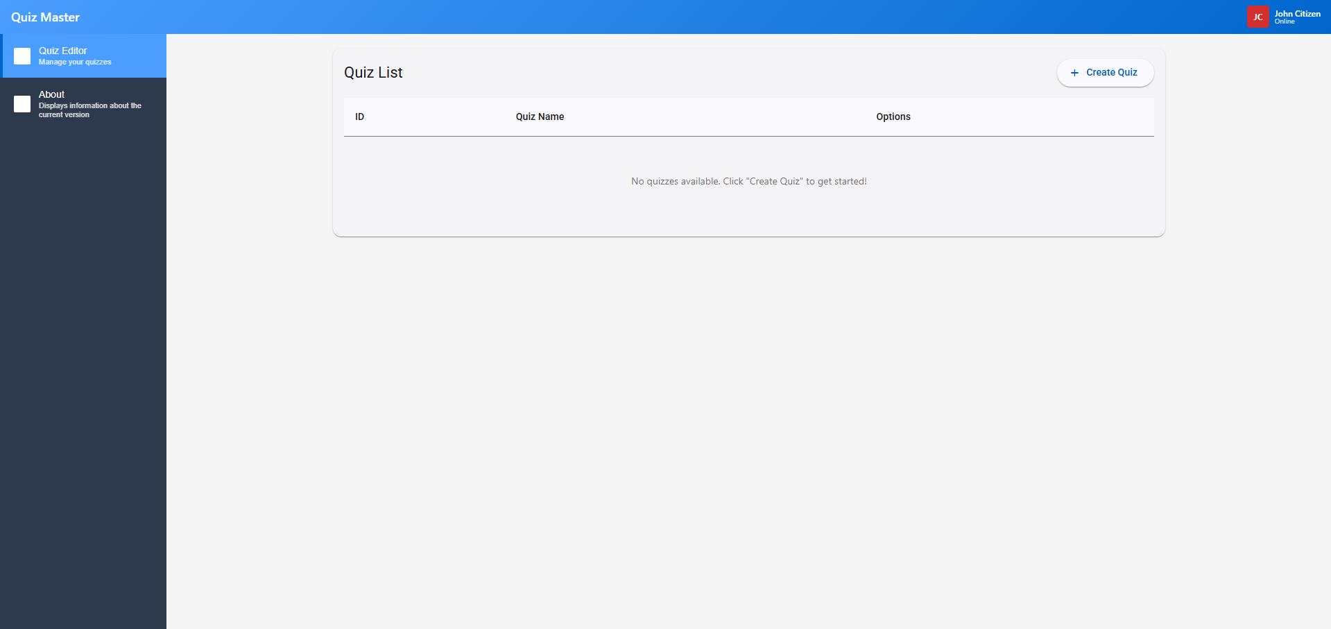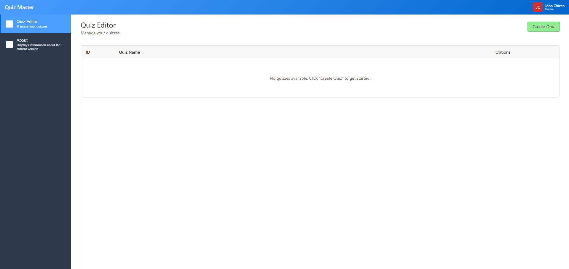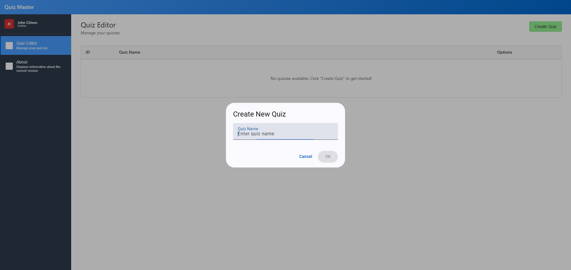 - Clicking Create Quiz launches a dialog that asks for the Quiz Name