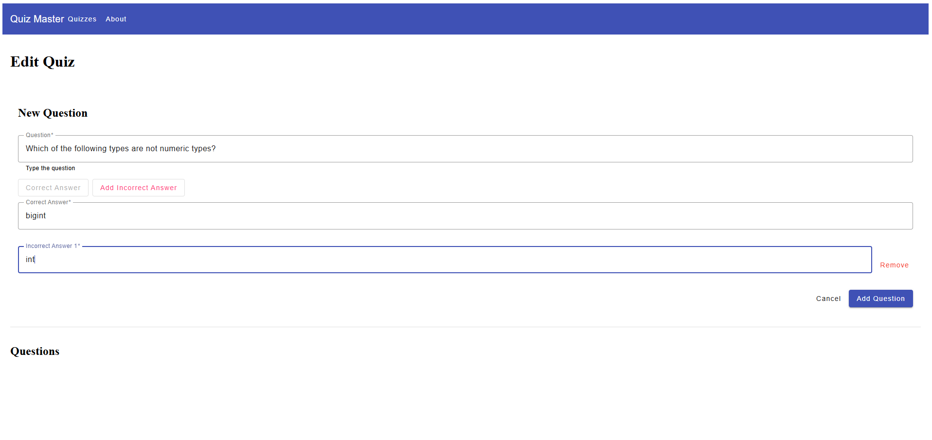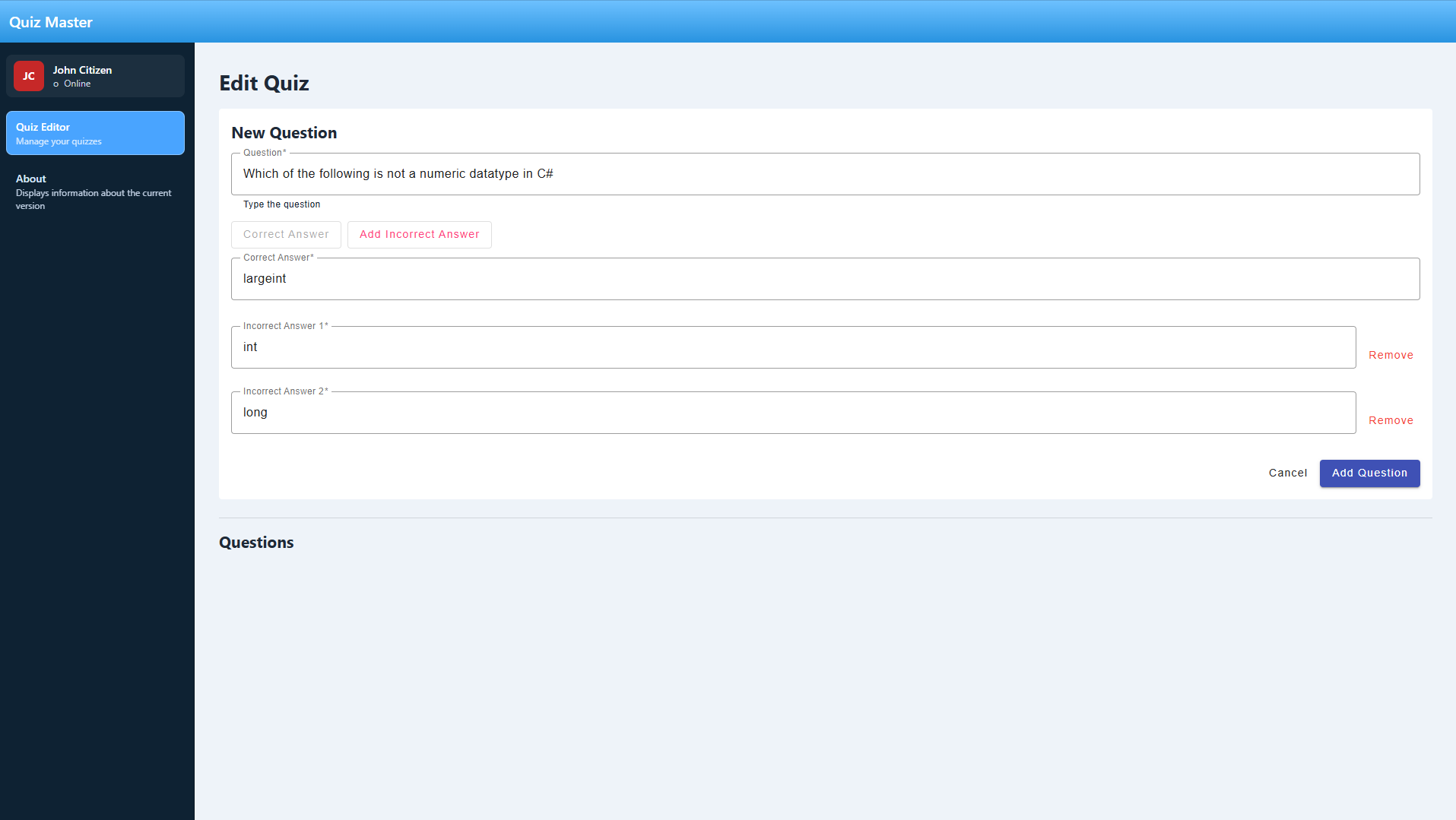 Quiz Master allows users to create quizes for users to take to assess their skill level.
