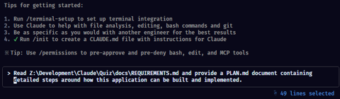 Step 6. Get Claude Code to read the Requirements Document and produce a PLAN.md